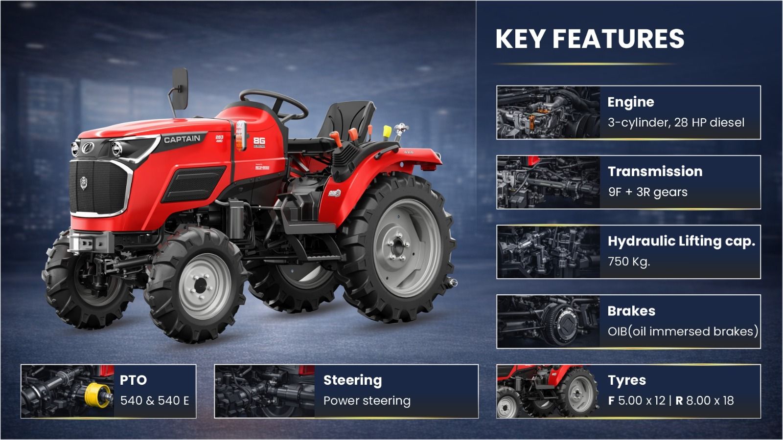 These Captain Tractors 283 4WD specifications clearly show that the tractor provides the right balance between compact design and practical power for daily farming operations.